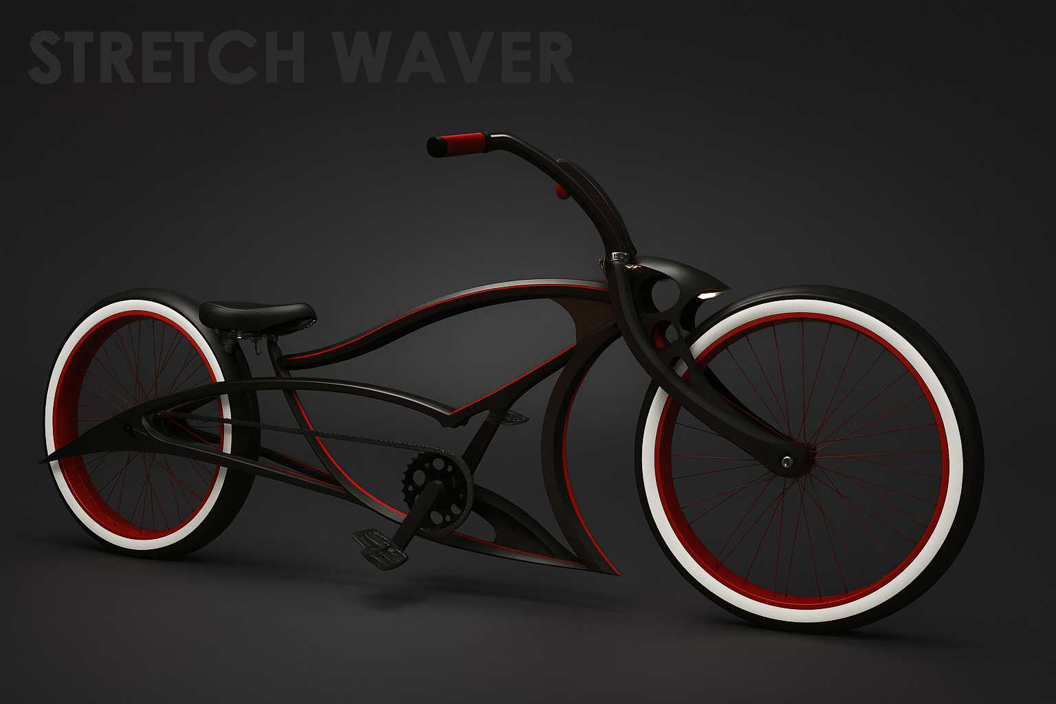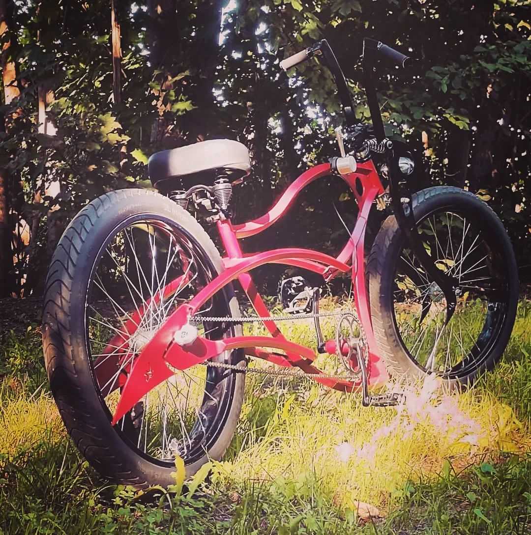 The Stretch Waver Frame, also known as "Potwór," is a striking custom bike frame measuring 170 cm in length with sharp, intersecting curves at both ends. This design excels in looks and handling, especially when paired with wide wheels and front suspension. The complete bike length on the Potwór frame is approximately 240 cm. There is an option to customize the frame with a dedicated fork. Perfect for riders who love the low & stretch style, this unpainted steel frame supports rim sizes 24”, 26”, and 28”. It features US/BMX or optional BSA threaded bottom bracket shell, a 1⅛” head tube with a 120 mm length, and fits a 28.6 mm seatpost clamp (31.8 mm). Disc brakes are available on order, along with a coaster brake option. Dimensions like the head tube to seatpost length (93 cm) and seatpost to bottom bracket shell length (65 cm) can be customized for the ideal fit. Embrace freedom and style with this distinctive handmade steel bicycle frame.